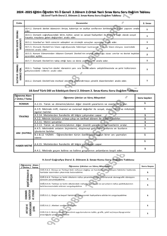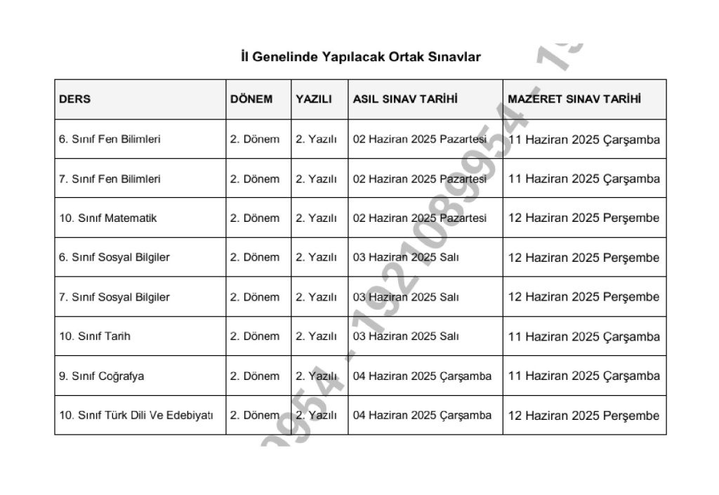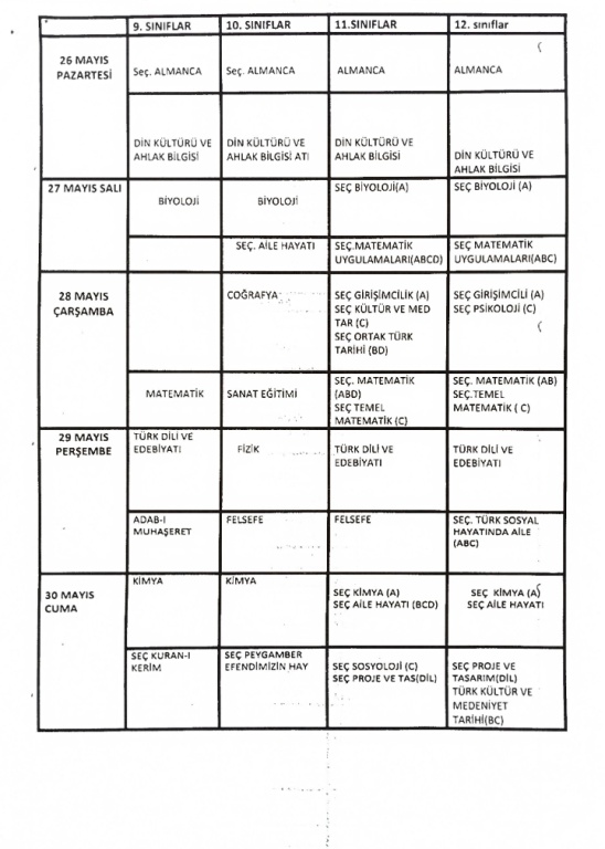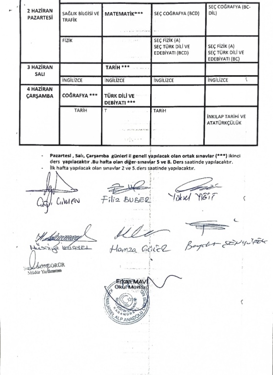 Karamürsel Alp Anadolu Lisesi 2024-2025 Eğitim Öğretim Yılı 2.Ortak Yazılı Sınav Takvimi