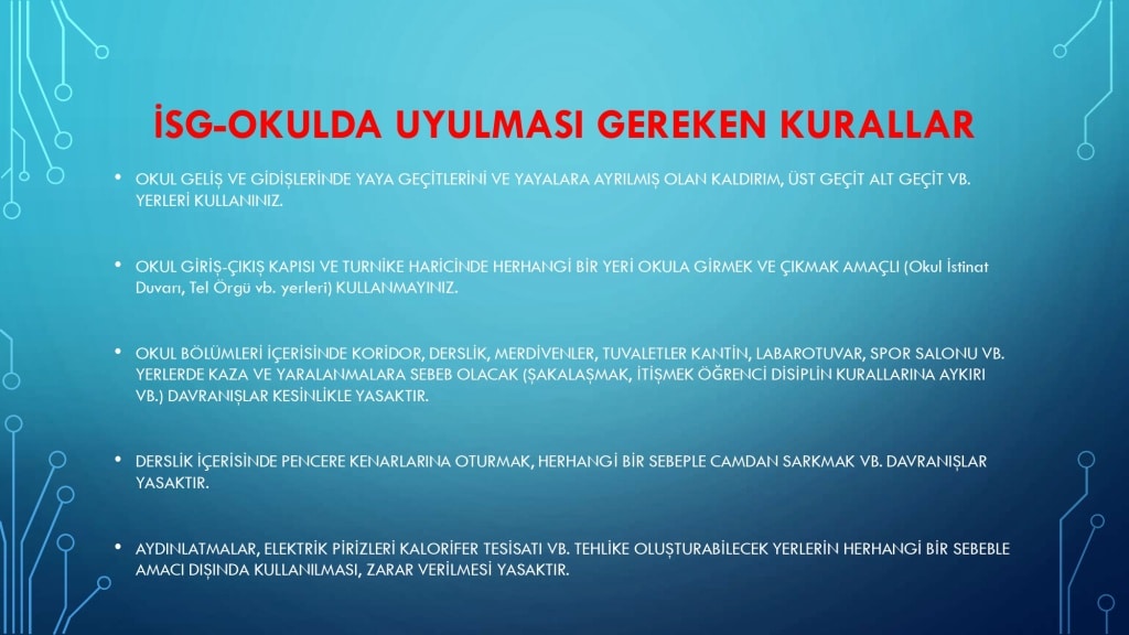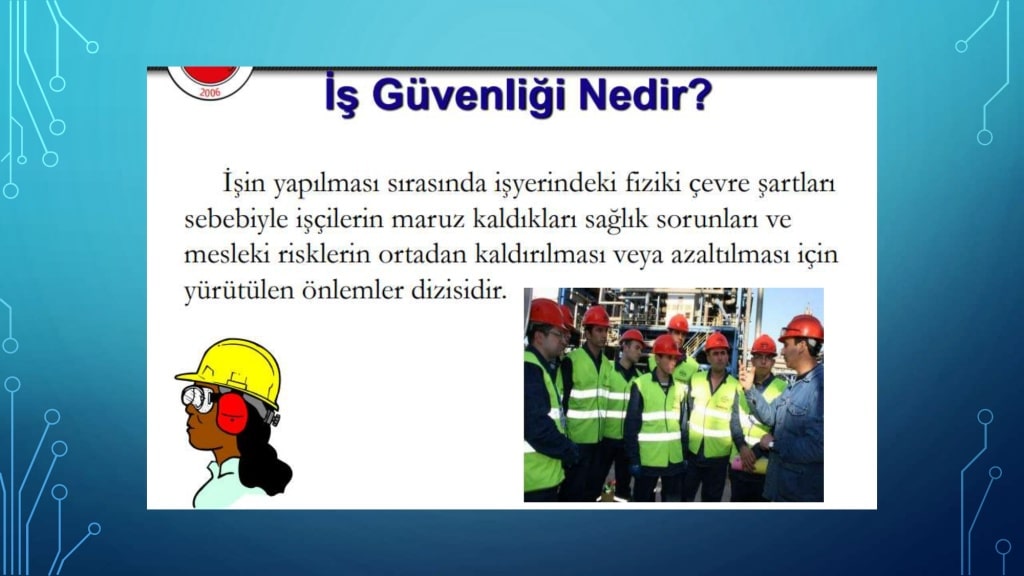 Ülkemizde 1987 yılından bu yana her yıl 4-10 Mayıs tarihleri arası "İş Sağlığı ve Güvenliği Haftası" olarak kutlanmaktadır.Çalışma hayatının en önemli konularından biri olan İş Sağlığı ve Güvenliği konusu tüm ülkelerin karşı karşıya olduğu ortak bir sorundur. Çünkü bu konu doğrudan insan sağlığı ve hayatı ile ilgilidir ve hiçbir şey insandan daha değerli değildir.