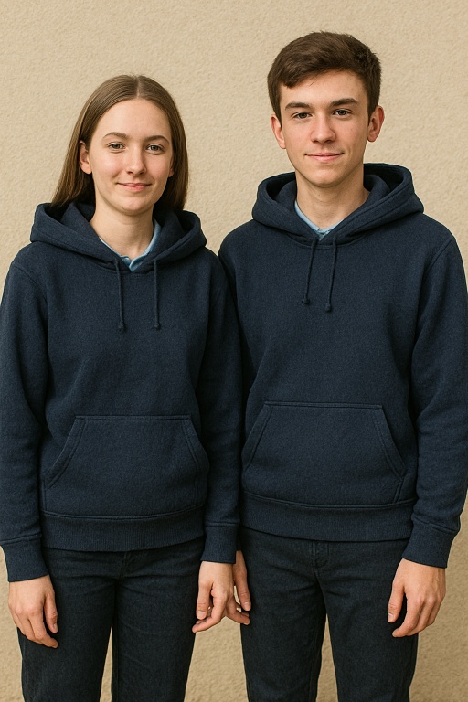 * Doğal ve sağlıklı kumaşlardan koyu lacivert fermuarlı veya fermuarsız kapüşonlu sweatshirt.